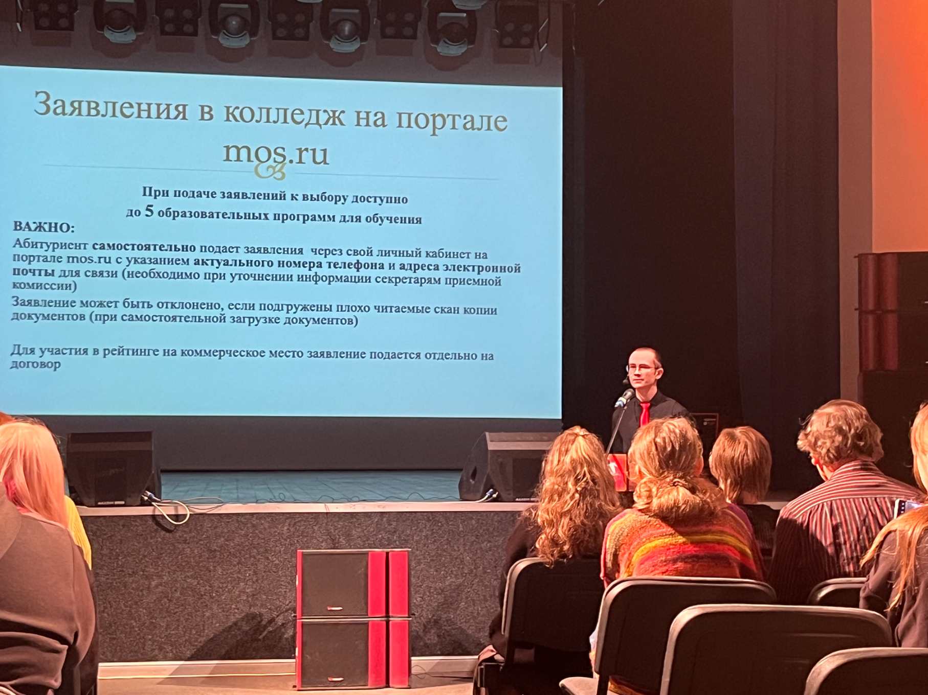 11 апреля 2026 года в колледже по адресу: г. Москва, 1-й Амбулаторный проезд, д. 8, стр. 2 состоялся День открытых дверей, посвящённый специальностям «Театрально-декорационное искусство» (по видам) и «Театральная и аудиовизуальная техника» (по видам). С информацией о правилах приёма и порядке поступления выступил Ямбаршев Д. С. О реализуемых направлениях подготовки рассказали преподаватели Салкова Н. В., Мельникова Е. В., Горелов М. Д., Юровский А. А., Жаркова Г. Г., а также студенты группы 4ХБО Лесничий Никита и Савельева Кира. В ходе мероприятия абитуриентам и их родителям были продемонстрированы лаборатории и витрины колледжа, представлены учебные и творческие работы студентов. Гости смогли задать интересующие вопросы о поступлении, обучении и особенностях выбранных специальностей.