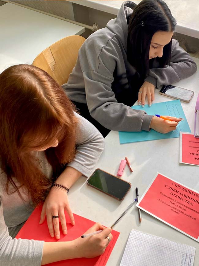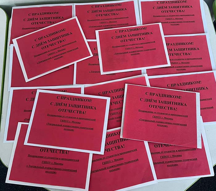 9 февраля 2026 года волонтёры ГБПОУ г. Москвы «ТХТК» , Студенческий совет , обучающиеся колледжа под руководством заместителя директора по УВР Речкиной Л.Я., педагога–психолога Лапиной Е.А., преподавателей колледжа Рыбкиной М.И., Белоусовой И.Ю. и Кирилловой И.В. провели волонтерскую акцию - нарисовали открытки-поздравления с 23 февраля с пожеланиями, написали письма для солдат на СВО и передали их в Комитет семей воинов Отечества. Комитет выразил колледжу благодарность студентам и преподавателям колледжа за внимание, помощь и поддержку, за отзывчивость и доброту! Поздравляем с Днём Защитника Отечества всех участников СВО!