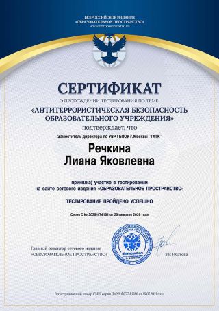 27 и 28 ноября 2024 года студенты колледжа под руководством заместителя директора по УВР Речкиной Л.Я. приняли участие в мемориально-патронатной акции в ГБПОУ г. Москвы «ТХТК» в рамках общественного патроната по уходу за памятниками, мемориальными досками, памятными знаками и захоронениями участников Великой Отечественной войны, обороны Москвы, Московского народного ополчения, Героев Советского Союза и Российской Федерации, военачальников, посвященной 83-й годовщине начала контрнаступления советских войск в битве под Москвой и Дню Героев Отечества. Участники акции возложили цветы в память о великих героях нашей Родины. Выражаем особую благодарность студентам групп 1РТ(1) и 2ОС, принявшим активное участие в акции!