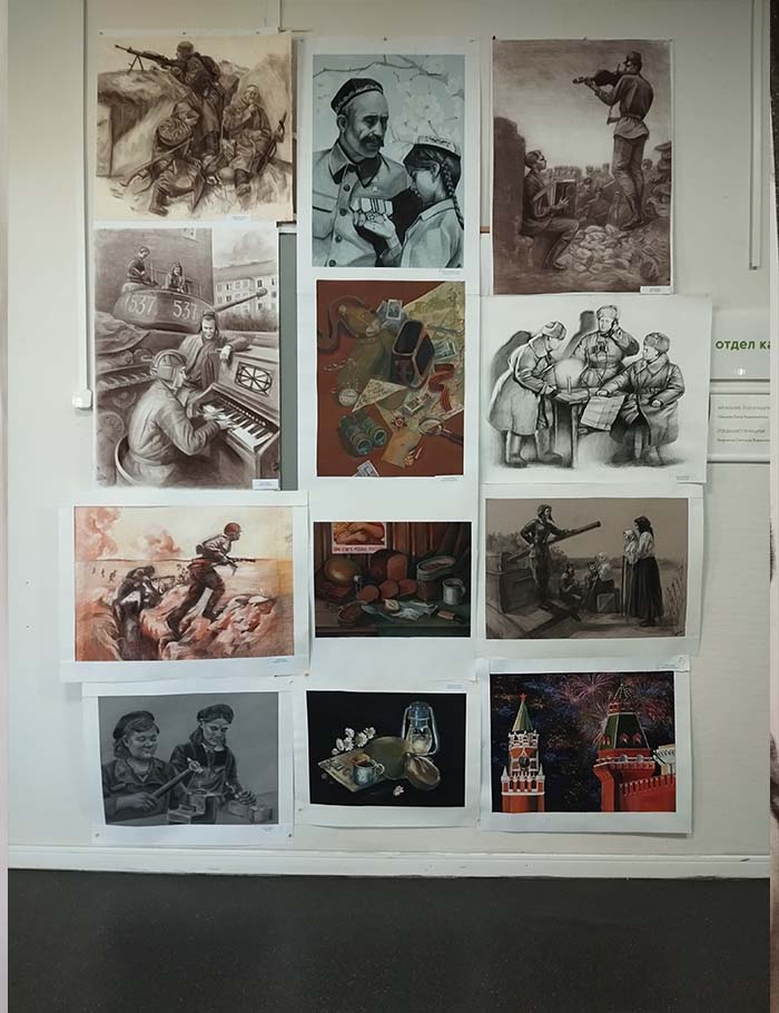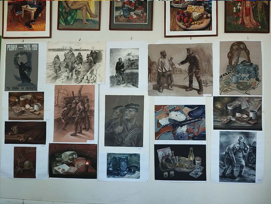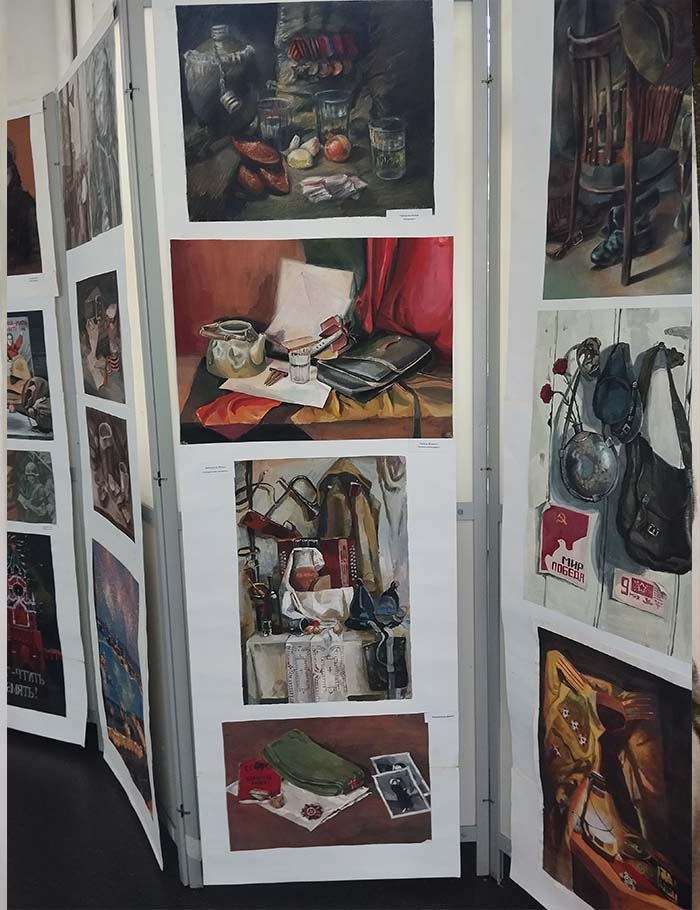 15 апреля 2025 года в преддверии 80-летия Великой Победы, в колледже, на ул. Радио, открылась выставка творческих работ, посвящённая великой дате. В экспозицию выставки вошли сюжеты, отражающие события тяжёлого времени нашей страны и великий подвиг советского народа в годы Великой Отечественной войны на фронте и в тылу. Студенты младших и старших курсов выполнили достойные работы, посвящённые юбилейной дате. В экспозицию выставки вошли работы разного жанра: батальный жанр, портрет, натюрморт, плакат; техника исполнения очень разнообразная (темпера, гуашь, акварель, пастель, мягкие материалы). Выставка трогательная и одновременно праздничная. В творческих работах студентов заметно трепетное отношение к юбилейной дате, к людям, принявшим на себя тяготы военного времени и вставших на защиту Родины.