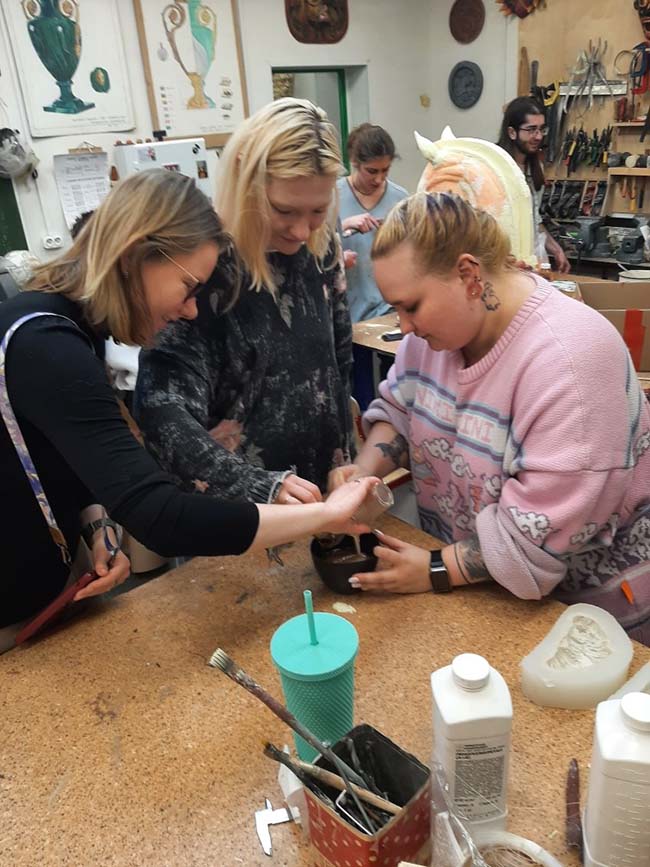21 февраля 2025 года в мастерских ТХТК на ул. Воронцовская, д. 15/10, стр.7 преподаватель Елизавета Владимировна Бавченкова провела для студентов группы 4ХБО мастер-класс по формовке кисти руки с использованием альгината. Студенты ознакомились с современной технологией изготовления слепка руки для создания муляжа.