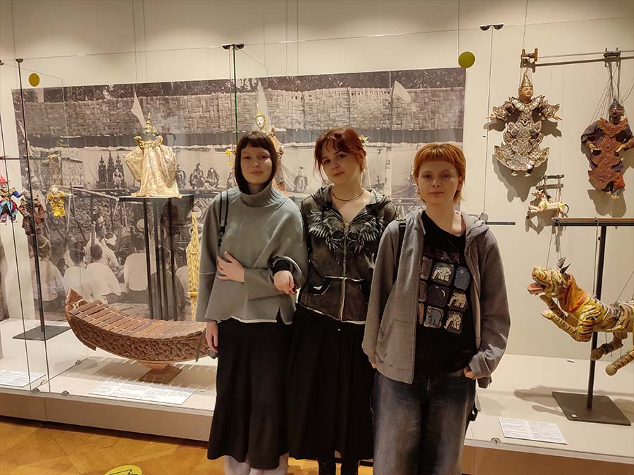 27 февраля 2026 года студенты-кукольники группы 3ХБО вместе с преподавателем Инессой Васильевной Геннис посетили выставку «Люди, куклы, маски. Театр Дальнего Востока и Юго-Восточной Азии» в Музее искусства народов Востока и познакомились с разнообразными традициями театров Востока, увидели уникальных театральных кукол, театральные маски, костюмы, реквизит, гравюры и скульптуру малых форм, связанные с историей театра Китая, Японии, Индонезии, Бирмы, Кореи, Ветнама.