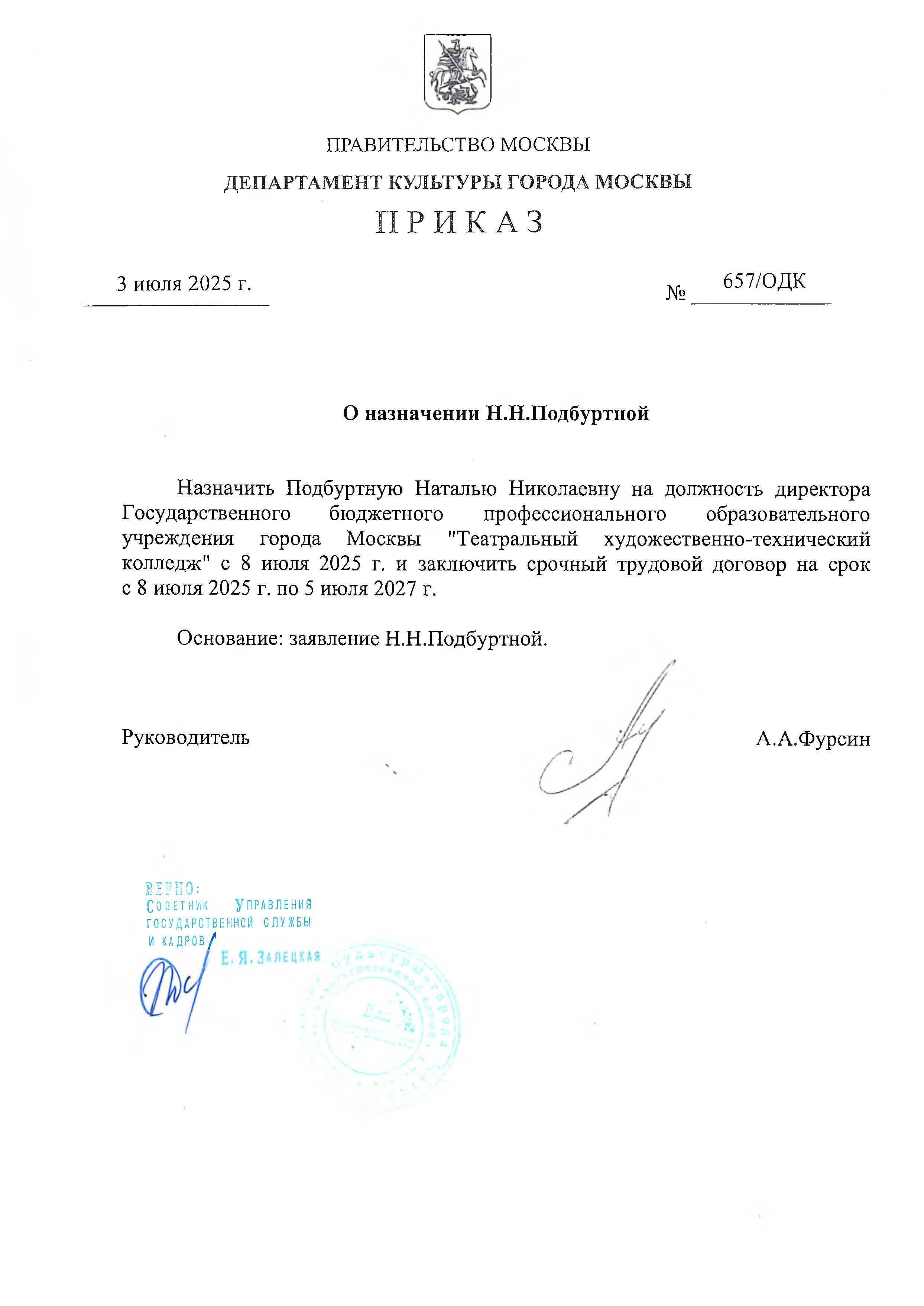 Приказ о реорганизации Театрального ходожественно-технического колледжа от 01.12.2004г. № 819