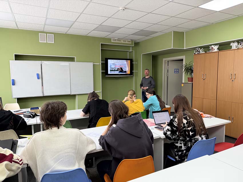 2 апреля 2025 года педагог-психолог Лапина Е.А. провела для студентов группы 3Реклама тренинг по стрессоустойчивости. Тема занятия - роль тела как одной из опор в кризисных ситуациях. Во время тренинга студенты осваивали практические техники самопомощи, направленные на регулирование эмоционального состояния через телесный опыт. Они учились управлять дыханием, применять приемы самомассажа, техник питья воды,  помогающих успокоить нервную систему. Благодаря таким занятиям студенты получают важные навыки для поддержания психологического благополучия, что особенно актуально в условиях высокой учебной и жизненной нагрузки.