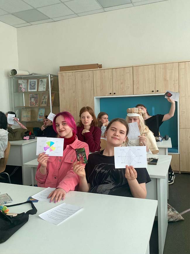 В октябре 2025 года педагог-психолог Лапина Е.А. проводит ресурсные тренинговые занятия со студентами художественных направлений. Осень - время, когда особенно важно заботиться о своём эмоциональном состоянии. На встречах студенты обращаются к летнему опыту, находят внутренние источники поддержки и вдохновения. Занятия включают в себя элементы арт-терапии, студенты работают с использованием метафорических карт и необычных творческих материалов, в том числе фольги. Такой подход помогает участникам раскрыть свой внутренний потенциал, выразить эмоции через образ и почувствовать себя более устойчивыми и наполненными