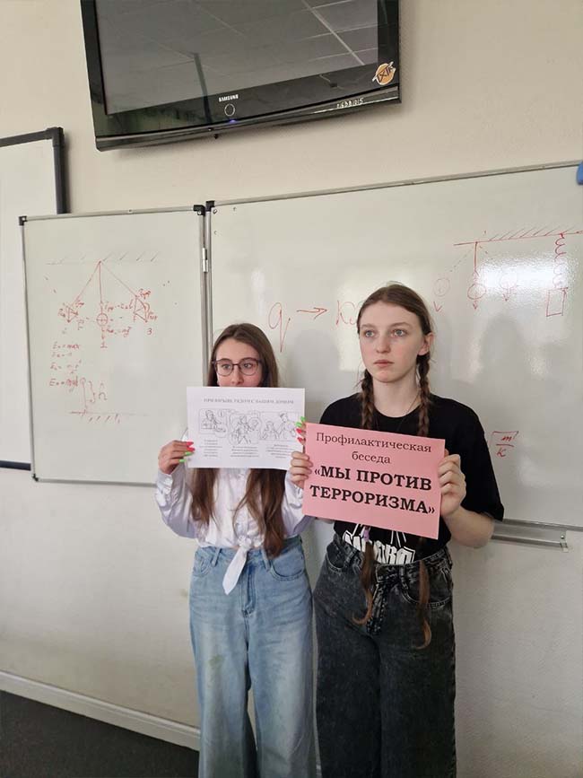 С 8 по 12 сентября 2025 года в колледже проходила неделя профилактики экстремизма и терроризма под названием «Мир без насилия». Мероприятие было организовано психолого-педагогической службой колледжа совместно с представителями студенческого совета и преподавателями гуманитарных дисциплин. Целью проведения недели стало формирование у обучающихся активной гражданской позиции, развитие культуры мирного взаимодействия, а также предупреждение вовлечения молодёжи в деструктивные идеологические течения. В рамках недели были проведены следующие мероприятия: интерактивное занятие-дискуссия «Толерантность как путь к миру»; просмотр и обсуждение видеоматериалов о профилактике экстремизма и терроризма; анкетирование студентов с целью выявления уровня информированности о проблемах экстремизма; работа информационного стенда «Молодёжь против терроризма».
