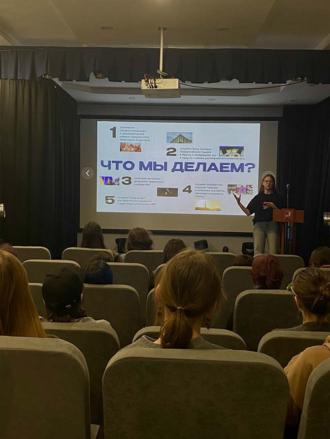 С марта 2026 года ГБПОУ г. Москвы «ТХТК» принимает участие в проекте Министерства культуры РФ «Культура суверенной России». 5 марта 2026 года около ста студентов отделения «Реклама» под руководством заместителя директора по УВР Речкиной Л.Я., педагогов-психологов Лапиной Е.А. и Родионенко Е.Д., преподавателей колледжа Ребедайло Ю.В., Щегловой Т.А., и библиотекаря Земсковой П.Н. посетили Московскую центральную художественную школу при Российской академии художеств, где проходила встреча с экспертом Петром Скляром – художником, основателем проекта «Словографика», соавтором образовательного проекта «Осмысленное чтение» по теме «СЛОВОГРАФИКА И РУССКИЙ КУЛЬТУРНЫЙ КОД В XXI ВЕКЕ». Встреча была очень полезной и познавательной. В формате открытого диалога, включающего лекционный и дискуссионный блоки, он рассказал студентам о русском культурном коде и символах, о том, как их чувствовать и визуализировать через творчество.
