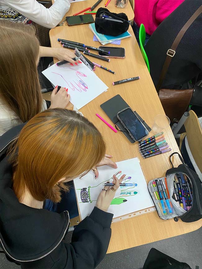 В октябре 2025 года педагог-психолог Лапина Е.А. проводит ресурсные тренинговые занятия со студентами художественных направлений. Осень - время, когда особенно важно заботиться о своём эмоциональном состоянии. На встречах студенты обращаются к летнему опыту, находят внутренние источники поддержки и вдохновения. Занятия включают в себя элементы арт-терапии, студенты работают с использованием метафорических карт и необычных творческих материалов, в том числе фольги. Такой подход помогает участникам раскрыть свой внутренний потенциал, выразить эмоции через образ и почувствовать себя более устойчивыми и наполненными