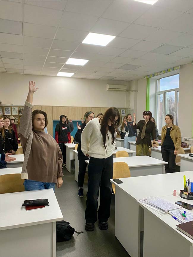 28 сентября 2025 года педагог-психолог Лапина Е.А. провела интерактивное занятие «За мир и согласие!», включавшее в себя лекционную и практическую части. В ходе мероприятия студенты приняли участие в разгадывании тематического кроссворда, посвящённого понятиям «мир», «дружба», «толерантность», а также выполняли творческие задания - писали короткие высказывания и рисовали символы мира и взаимопонимания. Занятие способствовало формированию у обучающихся позитивных установок, развитию навыков командного взаимодействия и осознанию ценности мирных отношений в обществе.