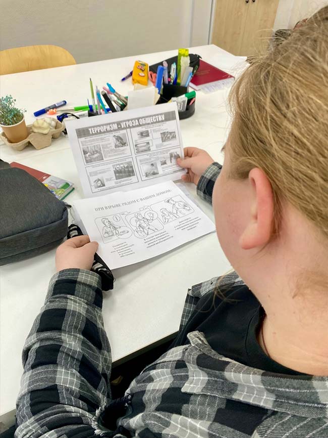 24 сентября 2025 года была проведена информационно-просветительская акция «Действуй правильно при угрозе теракта». В ходе мероприятия студентам были розданы информационные буклеты с рекомендациями о порядке действий при обнаружении подозрительных предметов, угрозе взрыва или захвата заложников. Педагог-психолог Лапина Е.А. ознакомила обучающихся с основными правилами поведения в экстренных ситуациях, подчеркнув важность спокойствия, внимательности и своевременного обращения к представителям правоохранительных органов. Студенты активно участвовали в обсуждении и задавали вопросы, касающиеся личной безопасности. Мероприятие способствовало повышению уровня информированности обучающихся и формированию ответственного отношения к вопросам общественной и личной безопасности.