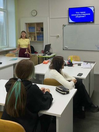 19 ноября 2025 года, в рамках Недели психологии, в колледже состоялась профилактическая лекция, посвящённая развитию навыков конструктивного взаимодействия. Педагог-психолог колледжа Лапина Е.А. пригласила практикующего специалиста, психолога-консультанта Ирину Кочубей, которая провела для студентов интересную и содержательную встречу о ненасильственном общении и здоровых взаимоотношениях в коллективе. Мероприятие прошло в тёплой и открытой обстановке, а студенты получили практические рекомендации, которые помогут им улучшить качество общения и взаимодействия в учебной среде