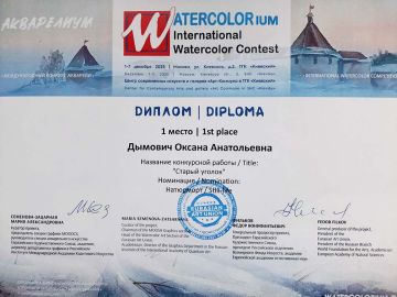 С 1 по 7 декабря 2025 года в проходившем Международном конкурсе акварели, преподаватель анимации Дымович Оксана Анатольевна заняла 1 место с работой «Старый уголок».