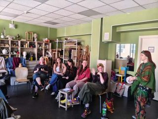28 июня 2025 года в мастерских ТХТК на ул. Воронцовская прошла защита курсовых работ студентов 3 курса отделения ХБО по спецдисциплинам «История материальной культуры» и «История куклы, костюма», выполненных под руководством преподавателя Инессы Васильевны Геннис. Работы - теоретическая часть, папки, эскизы - были выполнены качественно, студенты успешно справились с поставленными задачами, изучив разные периоды истории материальной культуры, костюма и кукольного театра Западной Европы, России, Востока.