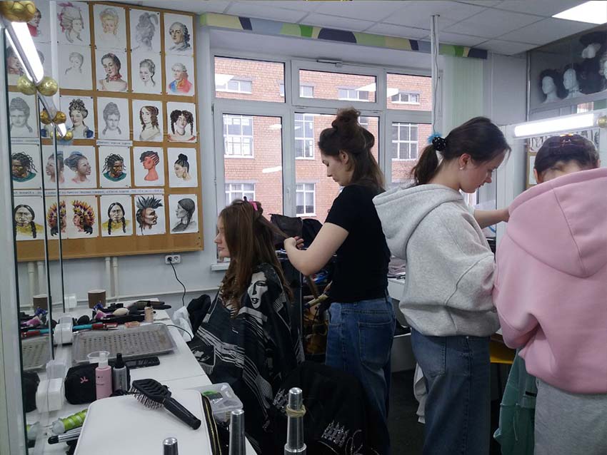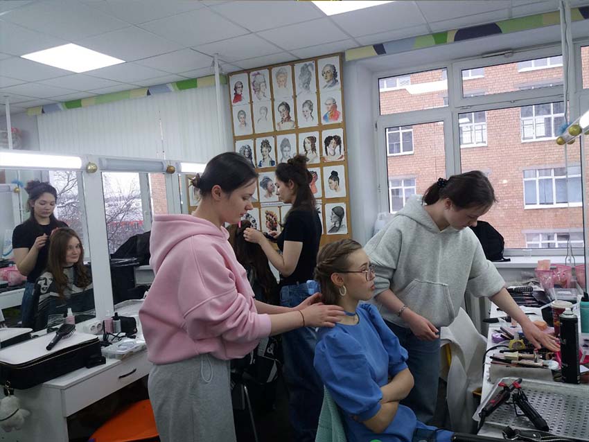 В феврале 2025 года студенты 3-х курсов гримерного отделения под руководством педагогов Бабич Н.М. и Митрохиной Н.В., помогали подготавливать к балу-спектаклю «Аленький цветочек» танцевальный коллектив Школы «Лидер» (г. Химки). Создавая для участниц бала легкие, элегантные прически и макияж, студентки продемонстрировали умение быстро и слаженно работать в команде.