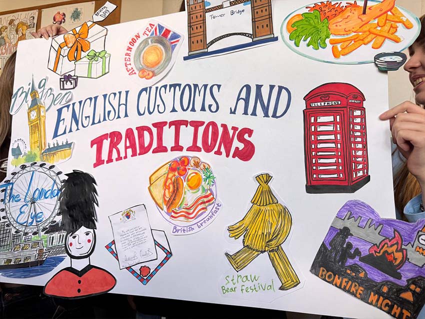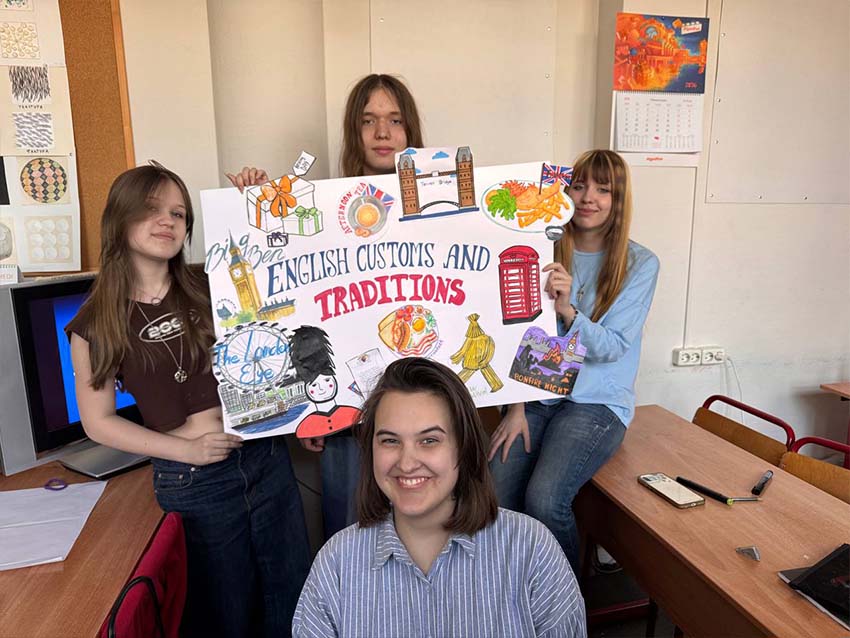2 апреля 2026 года преподаватель английского языка Малько Полина Александровна провела для студентов группы 1Реклама тематическое мероприятие «Путешествие в мир культурного наследия: Традиции и обычаи Великобритании». Урок начался с захватывающей викторины, в ходе которой будущие специалисты по рекламе смогли проверить свои знания о культуре и праздниках страны изучаемого языка. Интерактивный формат позволил ребятам не только продемонстрировать общую эрудицию, но и узнать новые факты о менталитете и повседневной жизни британцев. Особое внимание было уделено защите мини-проектов. Студенты представили результаты своих исследований, посвященных самым необычным и редким традициям Великобритании. Участники поделились друг с другом захватывающими историями возникновения национальных обычаев, проанализировав, как историческое наследие сохраняется в современном обществе. Творческий подход будущих специалистов по рекламе помог сделать каждое выступление ярким и запоминающимся. Завершающим этапом мероприятия стало создание художественного коллажа. Используя собственные рисунки и эскизы, студенты объединили самые знаковые символы британской культуры в единую композицию. Данное мероприятие позволило студентам глубже погрузиться в атмосферу культурного наследия Великобритании, расширить свой кругозор и развить профессиональные навыки презентации и визуализации идей.