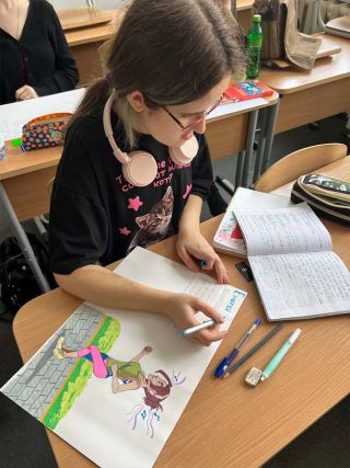 Завершением проекта стала презентация работ, в ходе которой участники демонстрировали свои иллюстрации и делились идеями на английском языке.