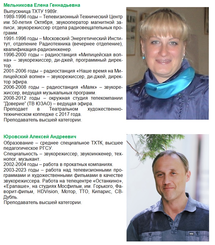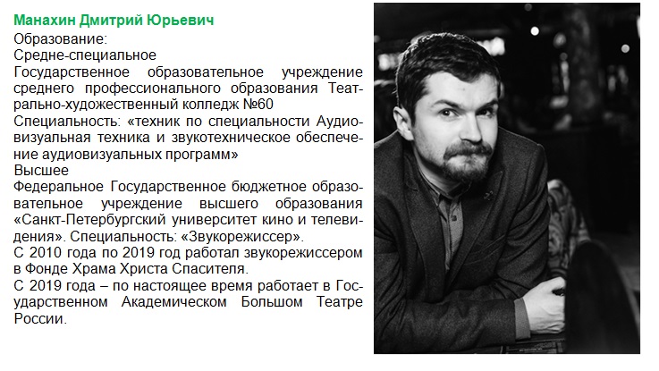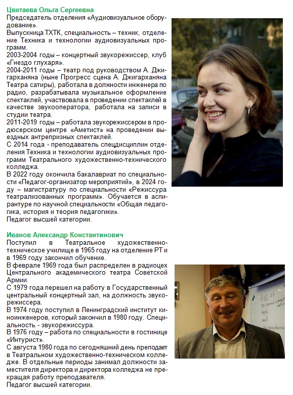 - Аудиовизуальное оборудование (звукорежиссер)