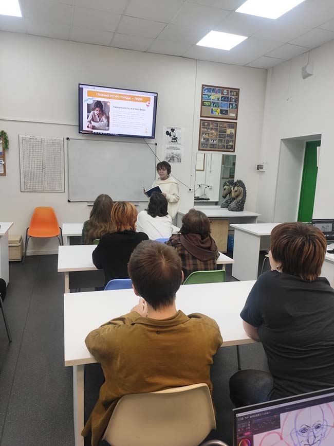 31 октября 2025 года классный руководитель группы 4ХКО Барынина А.В. провела с обучающимися группы деловую игру по диалогу поколений, преемственности традиций и повышению взаимопонимания, поговорили о богатой истории городов России. Обсудили важные вопросы уважения, ответственности и личной мотивации.