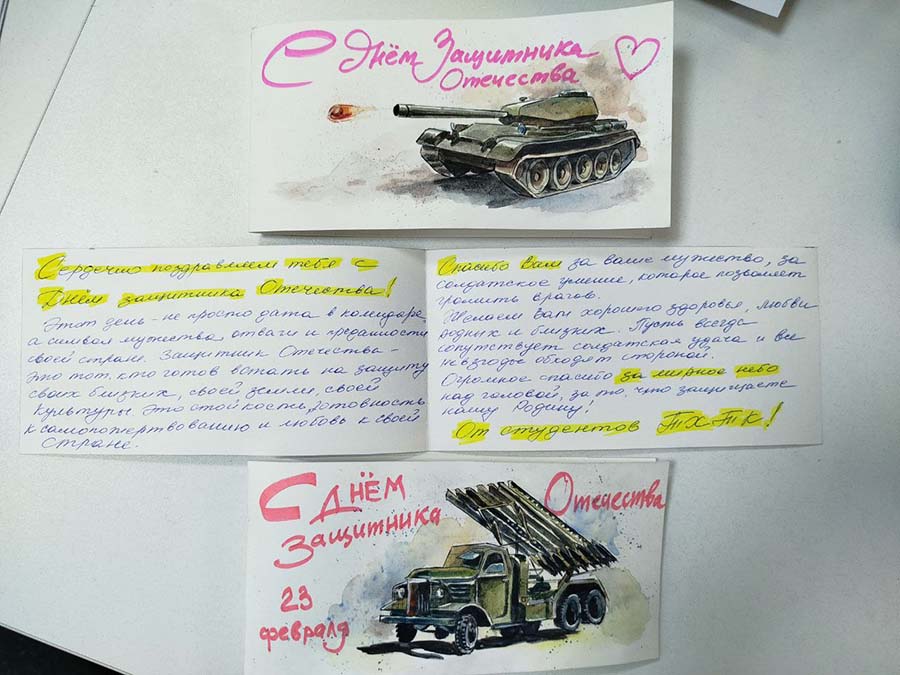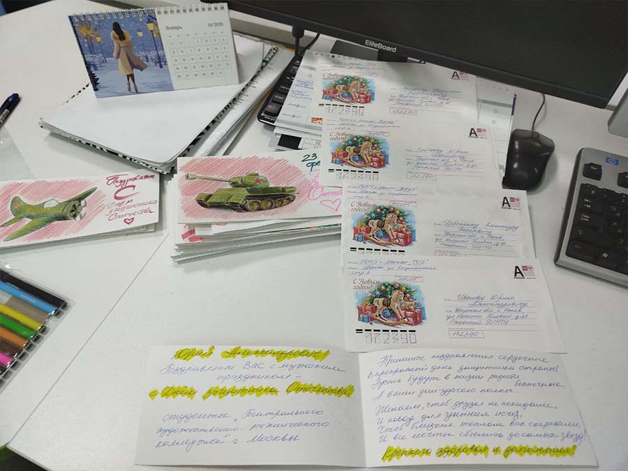 9 февраля 2026 года волонтёры ГБПОУ г. Москвы «ТХТК» , Студенческий совет , обучающиеся колледжа под руководством заместителя директора по УВР Речкиной Л.Я., педагога–психолога Лапиной Е.А., преподавателей колледжа Рыбкиной М.И., Белоусовой И.Ю. и Кирилловой И.В. провели волонтерскую акцию - нарисовали открытки-поздравления с 23 февраля с пожеланиями, написали письма для солдат на СВО и передали их в Комитет семей воинов Отечества. Комитет выразил колледжу благодарность студентам и преподавателям колледжа за внимание, помощь и поддержку, за отзывчивость и доброту! Поздравляем с Днём Защитника Отечества всех участников СВО!