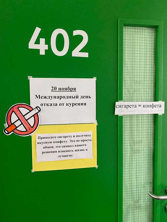 21 ноября 2024 года, в Международный день отказа от курения, в нашем колледже состоялась акция «Меняй сигарету на конфету», направленная на снижение уровня потребления табачной продукции среди студентов. Данное мероприятие стало частью нашей программы по продвижению здорового образа жизни. В рамках акции студентам предлагалась возможность обменять сигареты на конфеты, символизируя выбор в пользу здорового будущего. Колледж благодарит всех участников и организаторов акции за активное участие и вклад в создание благоприятной среды, свободной от табачного дыма. Мы убеждены, что подобные инициативы способствуют формированию ответственного отношения к своему здоровью и благополучию.