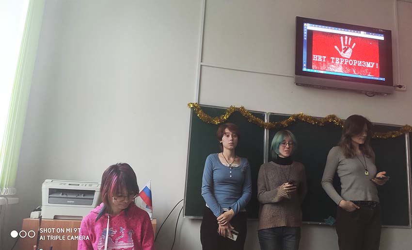 29 ноября 2023 года в ГБПОУ г. Москвы «Театральный художественно-технический колледж» педагогом-психологом Щетинниковой К.А. была проведена профилактическая беседа «Мы против Терроризма!» с целью формирование у обучающихся устойчивости к идеологии терроризма и экстремизма и другим антиобщественным поступкам. В ходе беседы педагог-психолог раскрыла понятия «терроризм» и «экстремизм», осветила особенности распространения экстремистских направлений в Интернете.